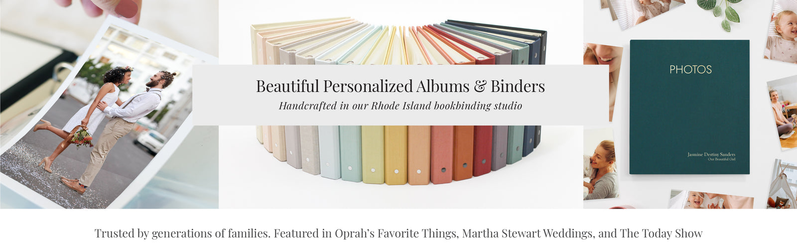 Here at Rag & Bone Bindery we promise authenticity, quality, and care with each and every book we make. The bindery has thrived for more than three decades as a unique family studio with roots in fine craftsmanship and classic design. All of our Albums, Binders, Guestbooks and Journals are bound by hand in our historic, renovated mill building right here in Pawtucket, Rhode Island.