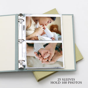 INSIDE: Photo Binders include clear sleeves, each designed to hold four 5x7 photos. Select the 25 sleeve option for 100 photos or the 50 sleeve option to accommodate up to 200 photos. Large 5x7 Photo Binders hold a maximum of 200 photos.