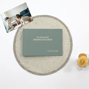 Whether she goes by Nana, Mima, Abuela, Gammy, or another special name, we can emboss Grandma's personal name right onto the cover for a truly one-of-a-kind heirloom that celebrates her role and her memories. Select the title which best fits your family: “My Beautiful Grandchild”, or “My Beautiful Grandchildren”.