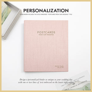 FEATURES: Featuring an elegantly embossed "POSTCARDS FROM OUR WEDDING" title, the binder includes premium, pvc-free, archival sleeves to protect your precious cards from fading and damage. Crystal clear sleeves are available for either 4x6 or 5x7 postcards. The transparent sleeves showcase both sides of each postcard.