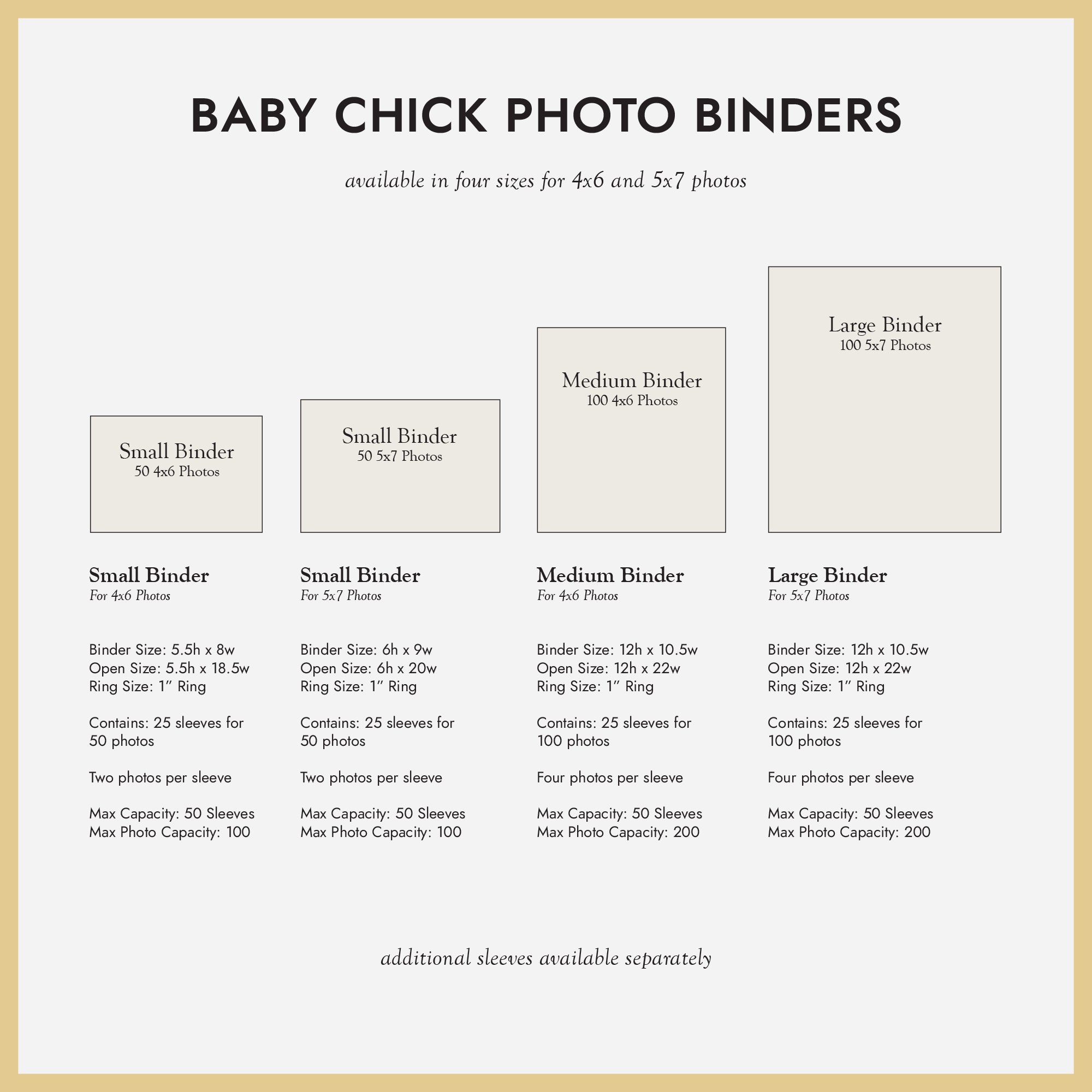 Baby photo collections come in all sizes. That's why this binder offers four different size and capacity options, ensuring you have the perfect home for your 4x6 or 5x7 prints. Each binder includes crystal-clear, acid-free, photo-safe sleeves to keep those irreplaceable memories protected for generations.