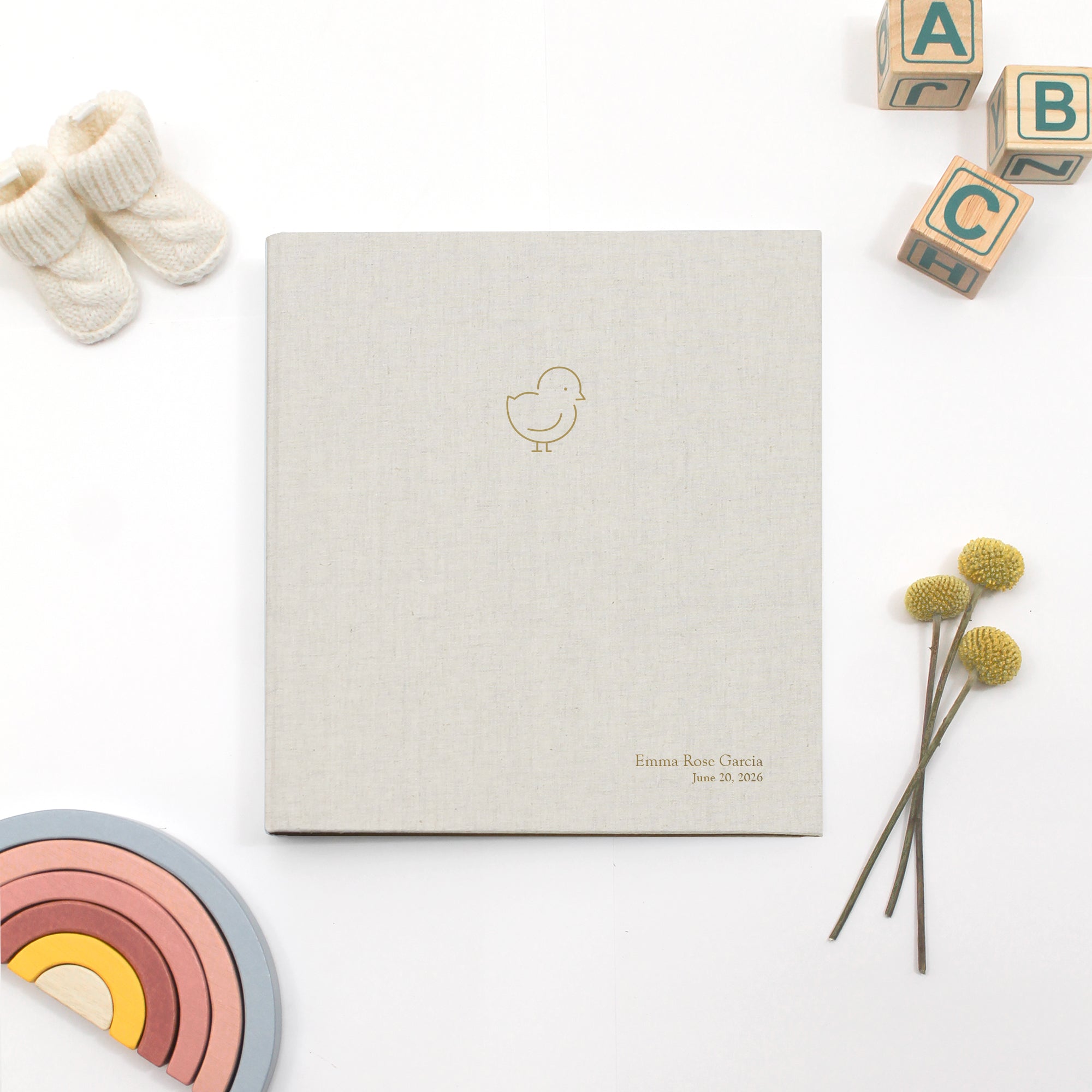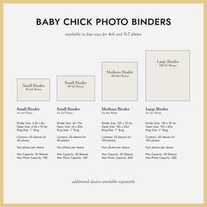 Welcome your little one's memories into the world with our charming Baby Chick Photo Binder. This special collection combines the cherished Rag & Bone Bindery quality you love with a sweet, timeless Baby Chick icon, perfect for celebrating the newest addition to your family. This binder is designed to be the heirloom that holds every precious first: first smiles, first steps, and every moment in between. Choose the size and cover that's just right for your growing photo collection.