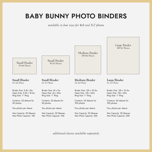 Welcome your little one's memories into the world with our charming Baby Bunny Photo Binder. This special collection combines the cherished Rag & Bone Bindery quality you love with a sweet, timeless Baby Bunny icon, perfect for celebrating the newest addition to your family. This binder is designed to be the heirloom that holds every precious first: first smiles, first steps, and every moment in between. Choose the size and cover that's just right for your growing photo collection.