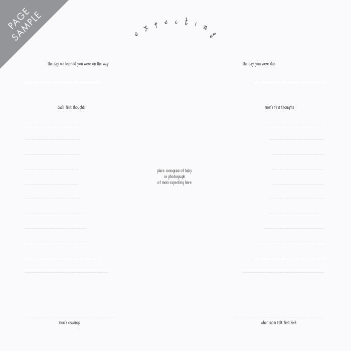 MOM & DAD pages include milestones from the first year of parenthood beginning with About Mom & Dad, Before You Were Born and preparing for the big day through first birthday.