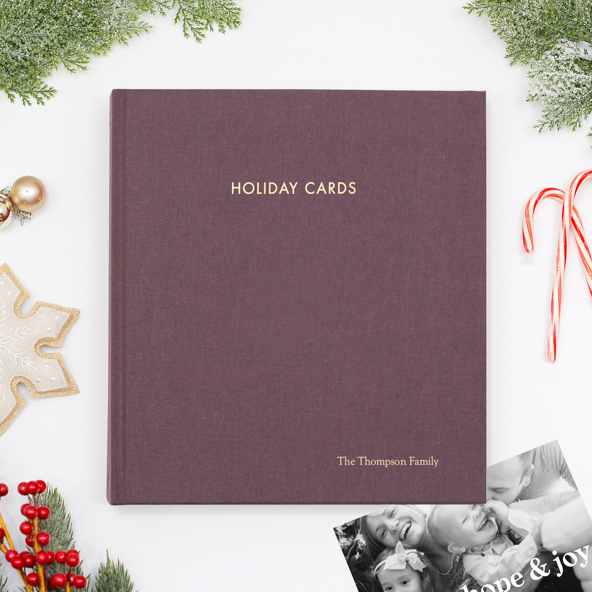 Holiday Card Album | Cover: Purple Linen | Embossed with “Holiday Cards” | Available Personalized