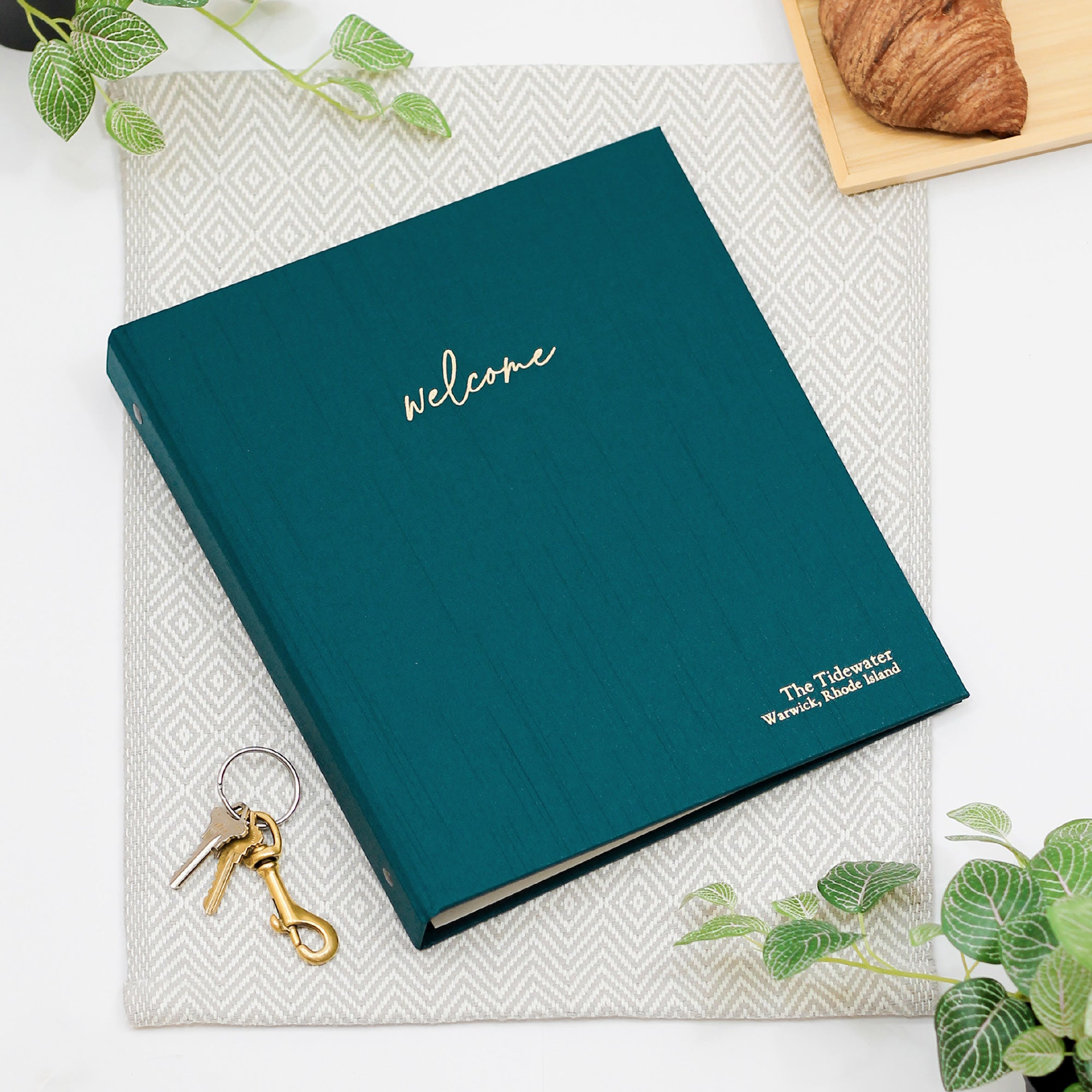 Create the perfect “welcome” for guests and friends with a Rag & Bone Bindery Welcome Binder. Great for keeping relevant documents, brochures, favorite spots, and suggestions all in one place for your rental property or vacation home. Print and store your 8.5 x 11 documents all in one place for guests and friends.