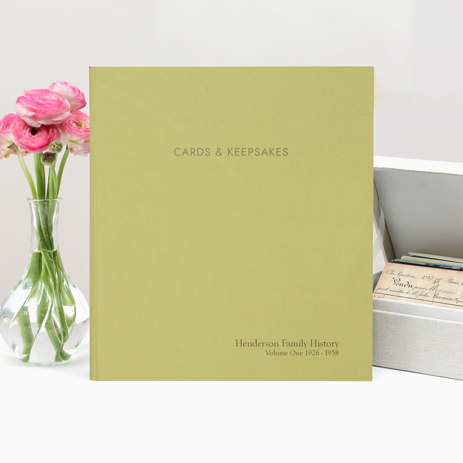 Cards & Keepsakes Binder | Cover: Moss Green Vegan Leather | Available Personalized