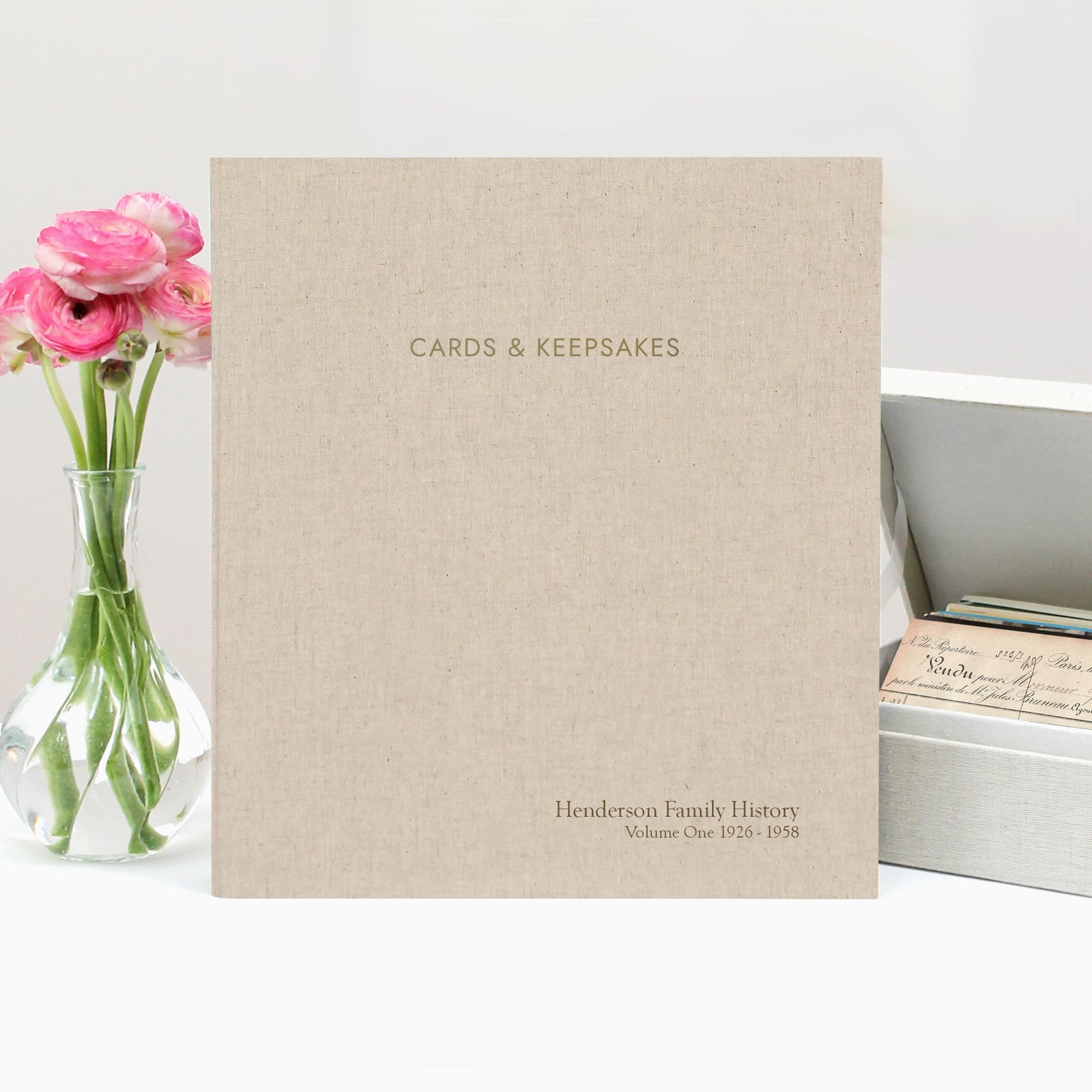 Cards & Keepsakes Binder | Cover: Jade Green Cotton | Available Personalized