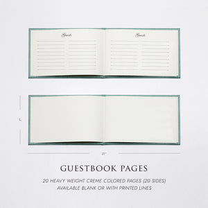 INSIDE: Twenty acid-free, creme colored pages, which are available with either printed lines (enough for 360 guests) or with blank pages.