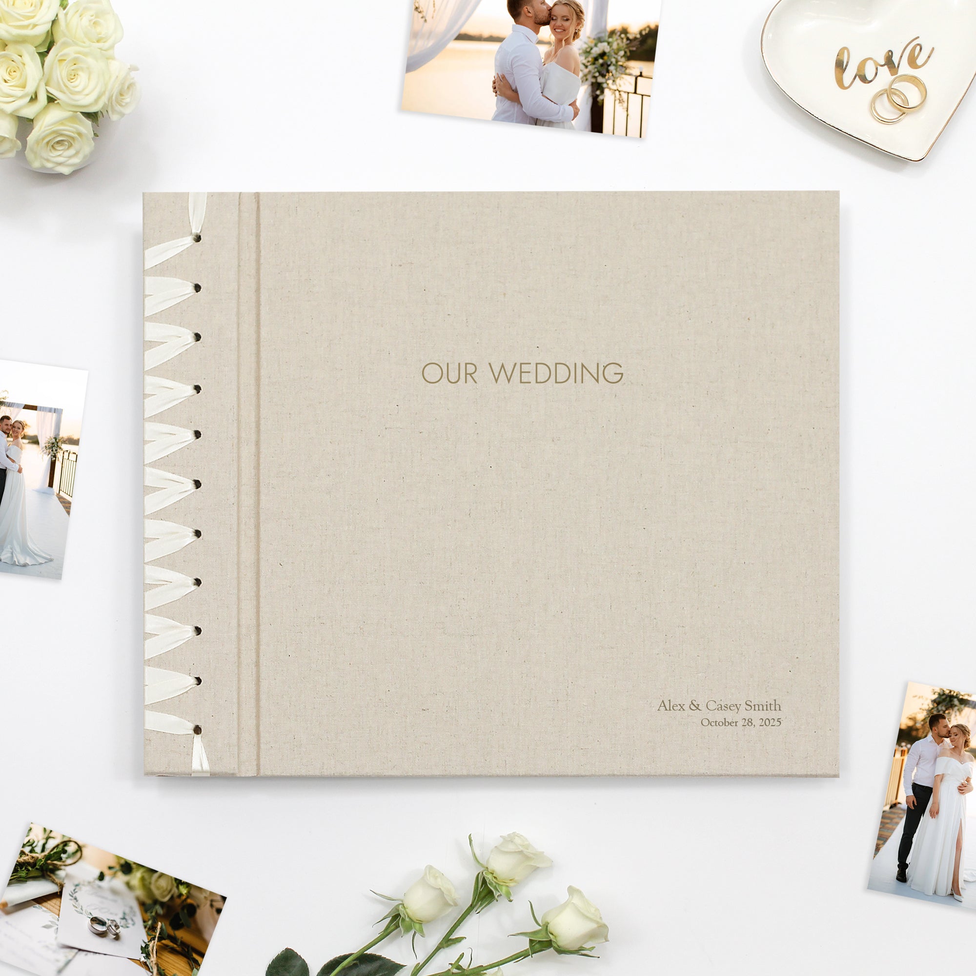 Deluxe Wedding Albums. Hand Cut Paper Pages + Ribbon Binding