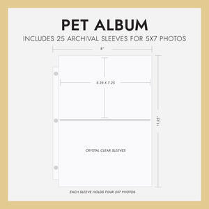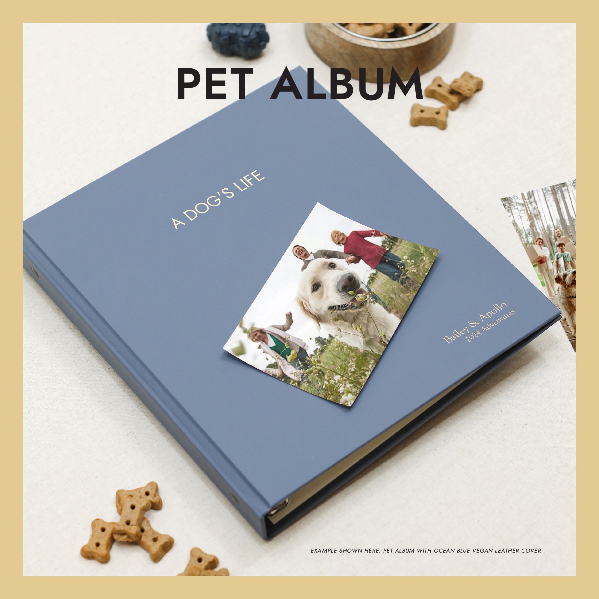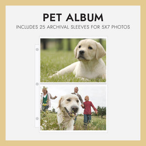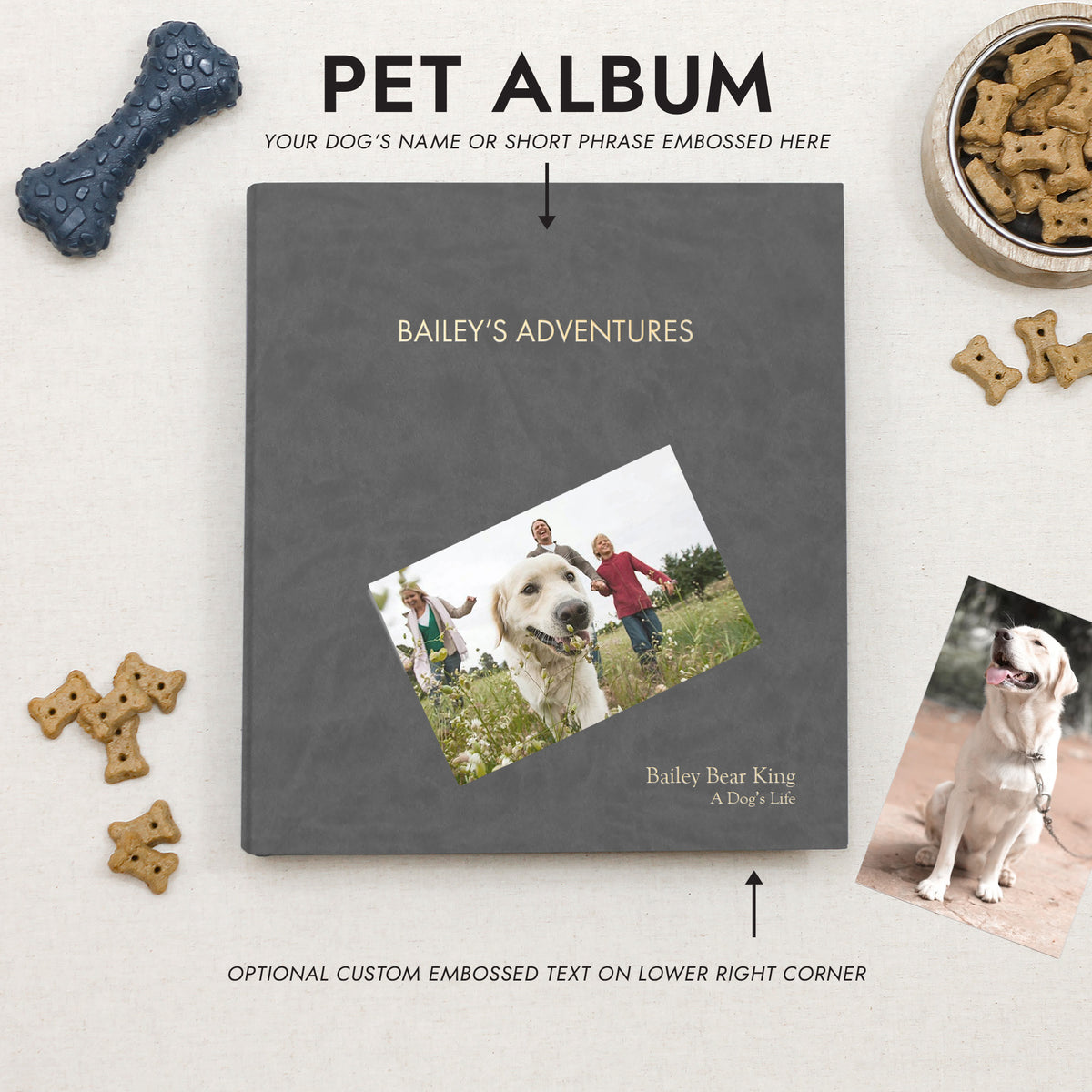 CUSTOM EMBOSSING:Personalize the cover of your Custom Pet Album with your pet’s name or other special message for a beautiful, one-of-a-kind Pet Album. Simply enter embossing details into the personalization fields above. Please see images in the product gallery for examples of embossing.
