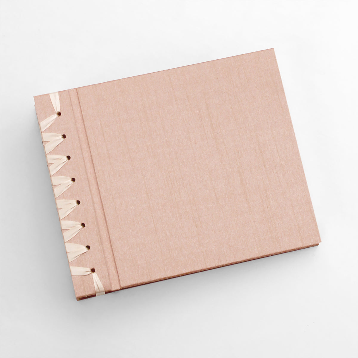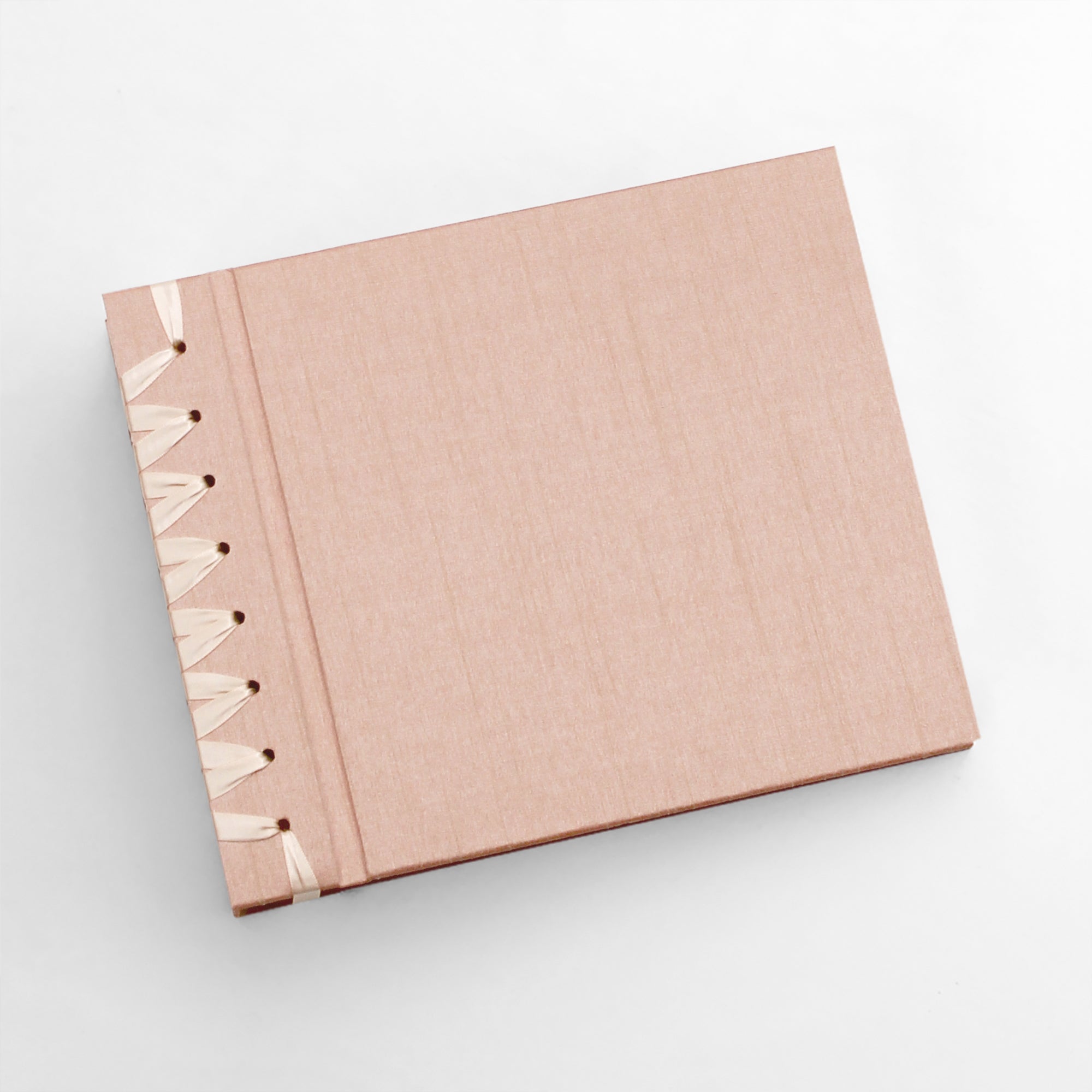 FEATURES: The binding includes filler strips which prevent the covers from yawning when filled with photo and memorabilia. The acid-free, creme colored, heavy-weight paper pages allow for creative layouts of different sized photos and mementos. Paper page albums are perfect for traditional family photo albums, wedding albums, retirement tributes, anniversaries or sign-in books. Our signature corseted ribbon binding looks beautiful on a coffee table or in a book shelf.