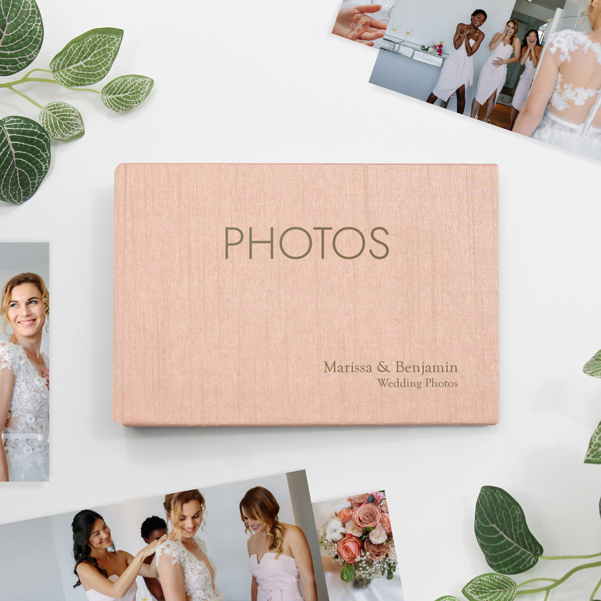 PERSONALIZATION: Add a distinctive touch to your Photo Binder with custom embossing. We can emboss a name, date, event, or short message (up to 25 characters per line) on the front cover in our classic Goudy font. See additional product images for examples. Just enter your desired text in the "Click To Emboss..." fields, and we'll take care of the rest. The gold embossed "PHOTOS" title on the front cover is optional.