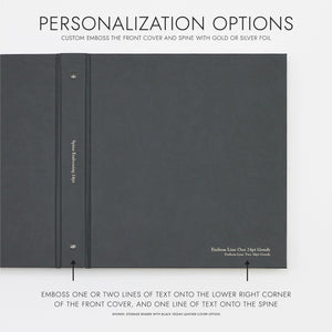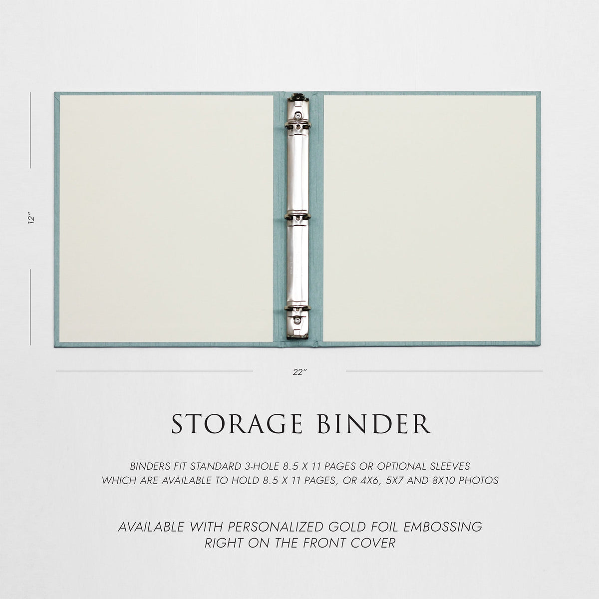 Rag & Bone Bindery Storage Binders are an elegant way to store 8.5 x 11 documents or standard sized 4x6, 5x7 or 8x10 photos.