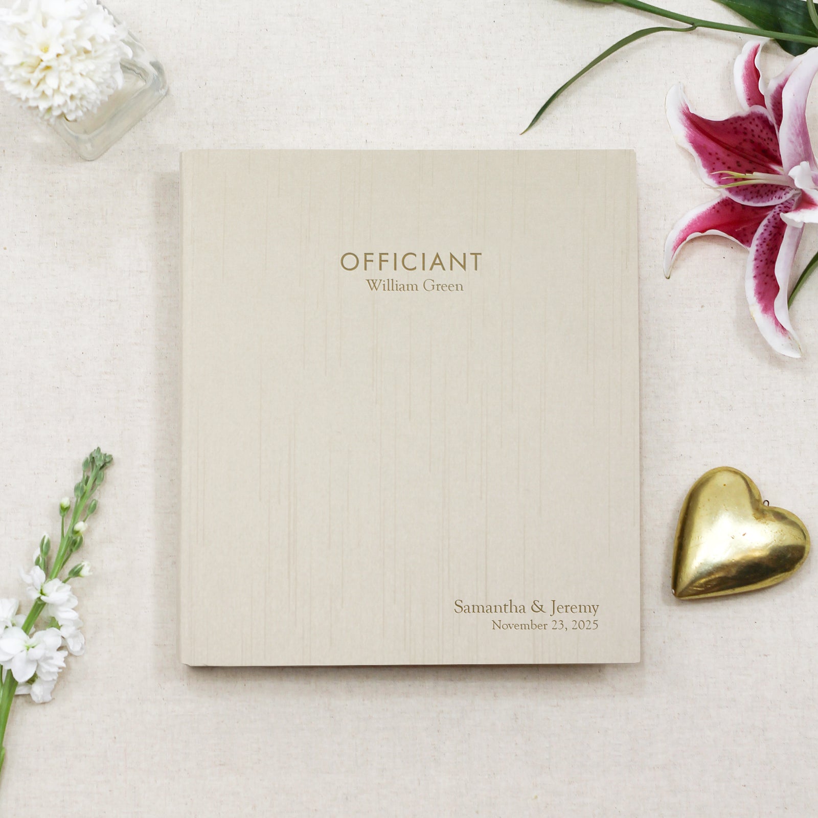 Add custom embossing to the front cover for a unique one-of-a-kind Officiant Binder