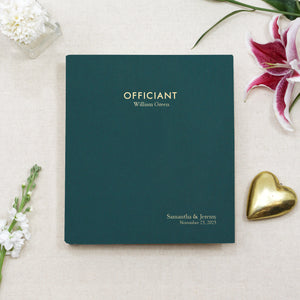 A unique and personal wedding binder for your vows, important papers, and special documents for your big day. A personalized binder is the perfect gift for your officiant to use during your ceremony.