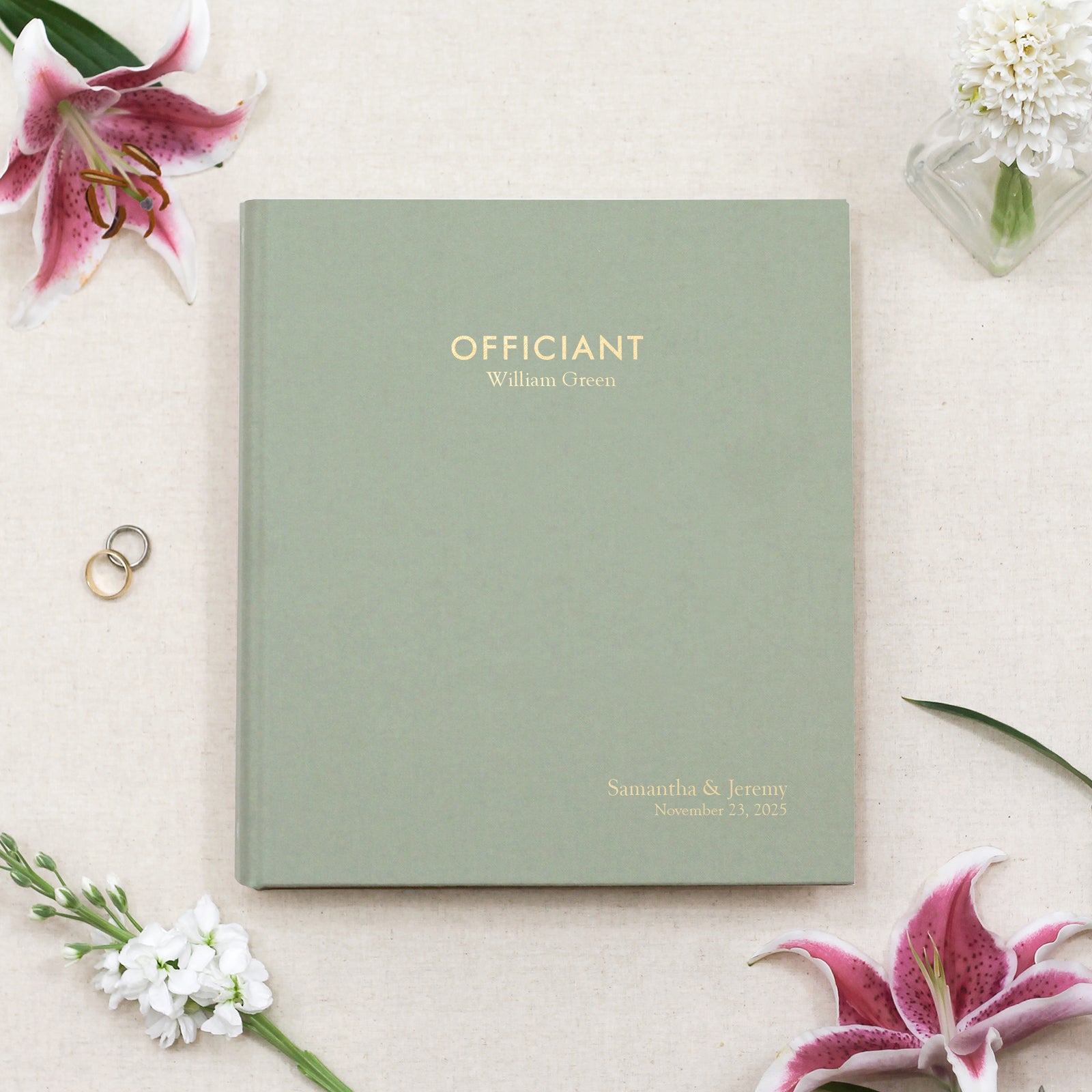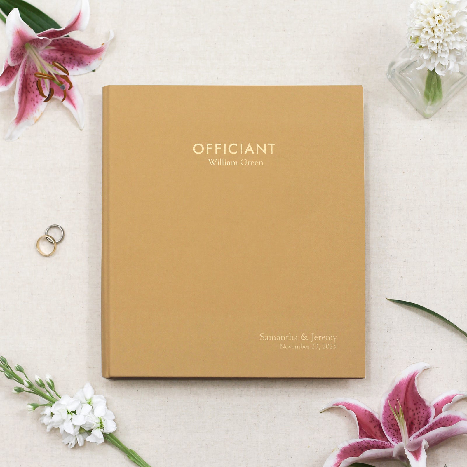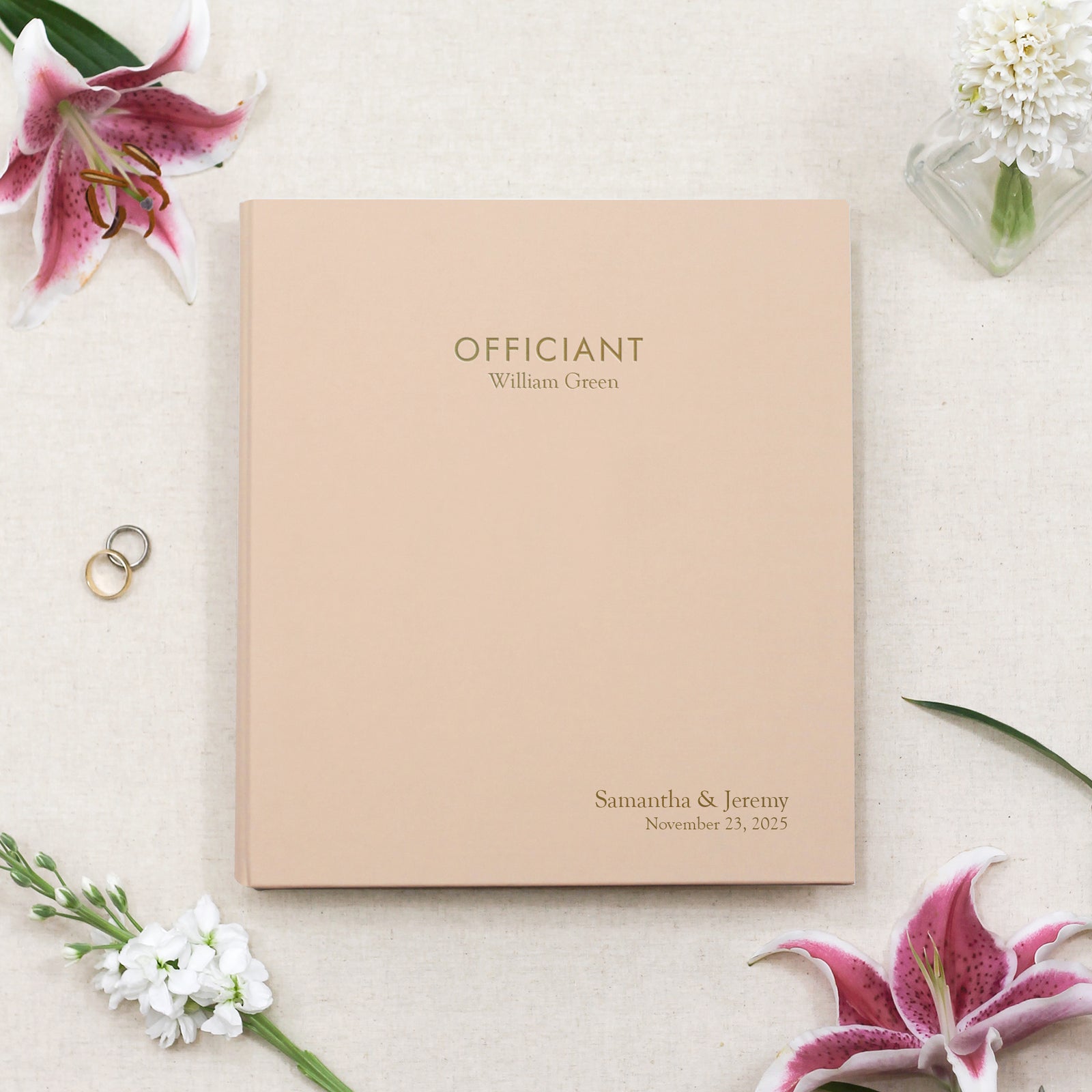 Add custom embossing to the front cover for a unique one-of-a-kind Officiant Binder