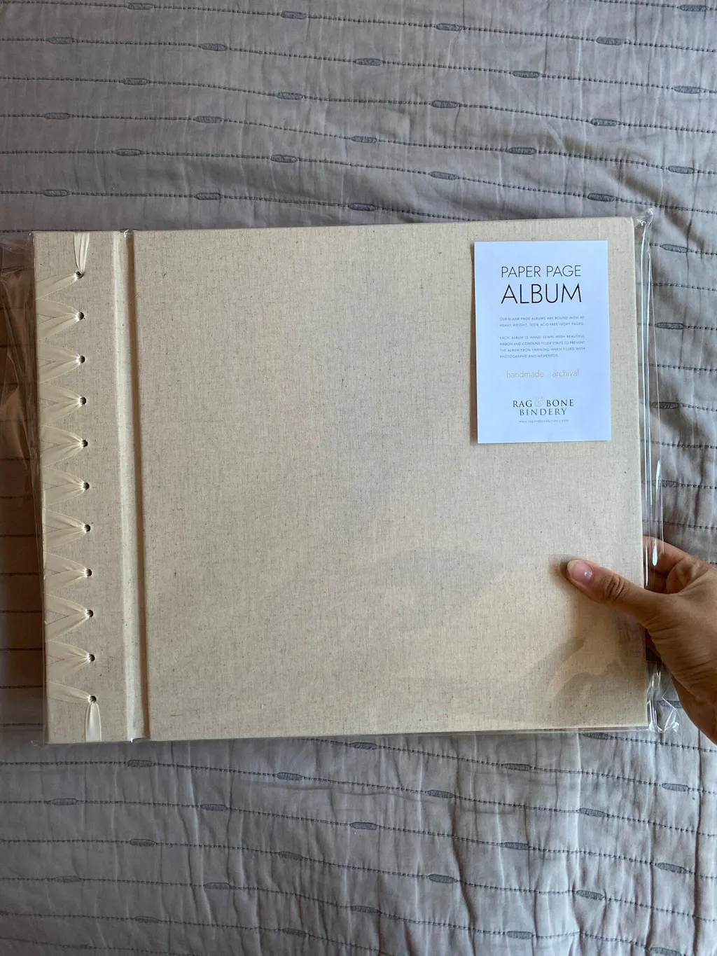 FEATURES: The binding includes filler strips which prevent the covers from yawning when filled with photo and memorabilia. The acid-free, creme colored, heavy-weight, paper pages allow for creative layouts of different sized photos and mementos. Paper page albums are perfect for traditional family photo albums, wedding albums, retirement tributes, anniversaries or sign-in books. Our signature corseted ribbon binding looks beautiful on a coffee table or in a book shelf.