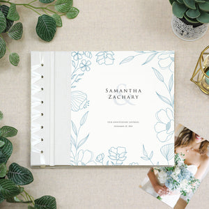 The book came out so beautiful. I initially chose the Rag and Bone Bindery because of the cover options they gave for the anniversary books. I got to choose a cover that I liked out of the many options, and I ended up choosing one that had similar colors to our wedding colors. That's what sold me beacuse unlike other options on the market, you get to personalize it with more than just your names. The cover and ribbon binding is so elegant and the pages are nice and thick. What really sent it over the top was the service though. I was a little late ordering this for our anniversary present and reached out to R&B to see if they could rush the order. They were so fast getting back to me and rushed the order with no additional charge. I got it earlier than I expected to even with the rush order and had it in time for our anniversary by a couple days. I can't wait to fill this out with my husband for years to come.