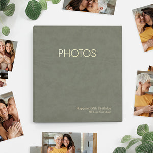 PERSONALIZATION: Add a distinctive touch to your Photo Binder with custom embossing. We can emboss a name, date, event, or short message (up to 25 characters per line) on the front cover in our classic Goudy font. See additional product images for examples. Just enter your desired text in the "Click To Emboss..." fields, and we'll take care of the rest. The gold embossed "PHOTOS" title on the front cover is optional.