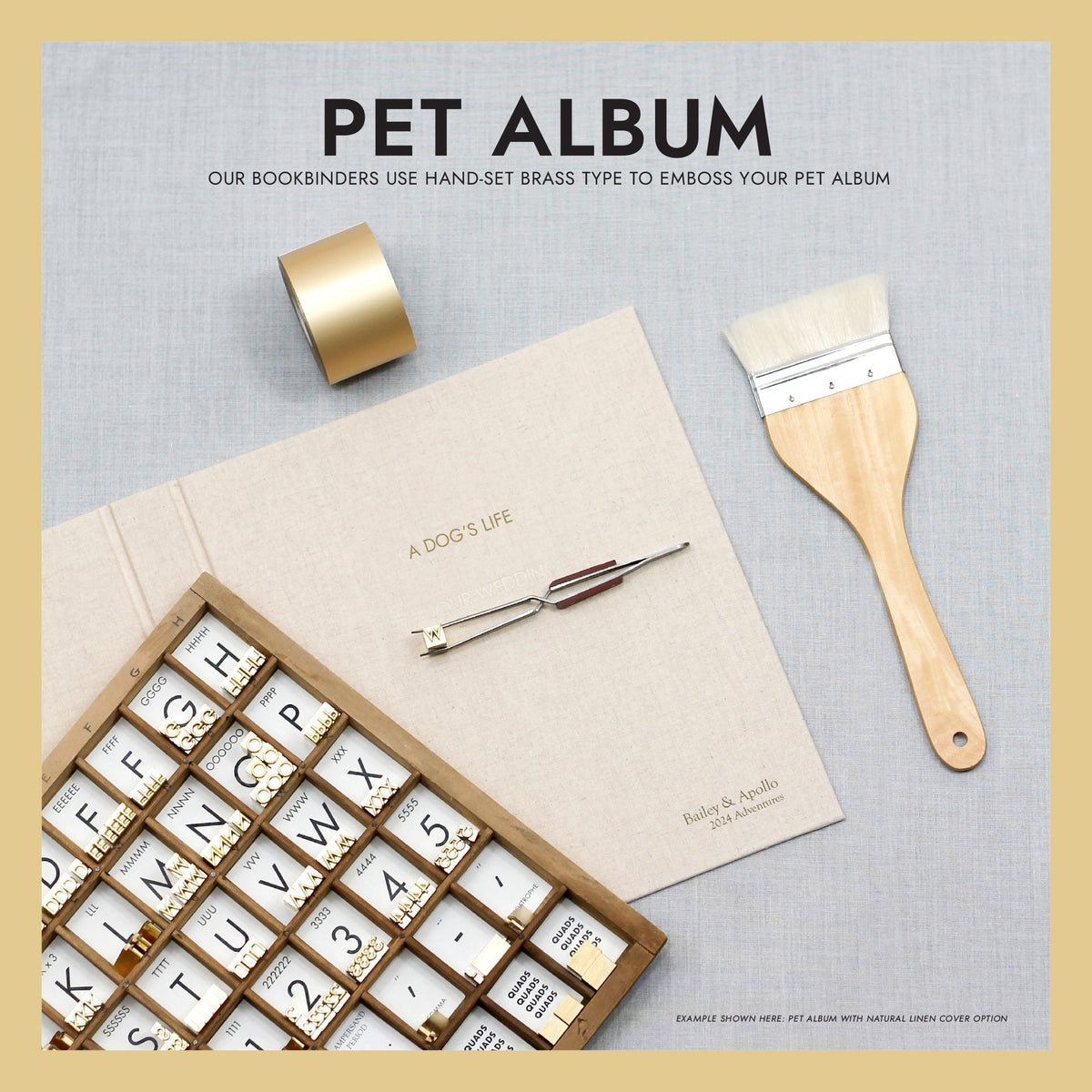 CUSTOM EMBOSSING:Personalize the cover of your Custom Pet Album with your pet’s name or other special message for a beautiful, one-of-a-kind Pet Album. Simply enter embossing details into the personalization fields above. Please see images in the product gallery for examples of embossing.