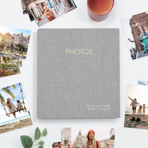 PERSONALIZATION: Add a distinctive touch to your Photo Binder with custom embossing. We can emboss a name, date, event, or short message (up to 25 characters per line) on the front cover in our classic Goudy font. See additional product images for examples. Just enter your desired text in the "Click To Emboss..." fields, and we'll take care of the rest. The gold embossed "PHOTOS" title on the front cover is optional.