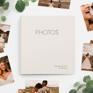 PERSONALIZATION: Add a distinctive touch to your Photo Binder with custom embossing. We can emboss a name, date, event, or short message (up to 25 characters per line) on the front cover in our classic Goudy font. See additional product images for examples. Just enter your desired text in the "Click To Emboss..." fields, and we'll take care of the rest. The gold embossed "PHOTOS" title on the front cover is optional.