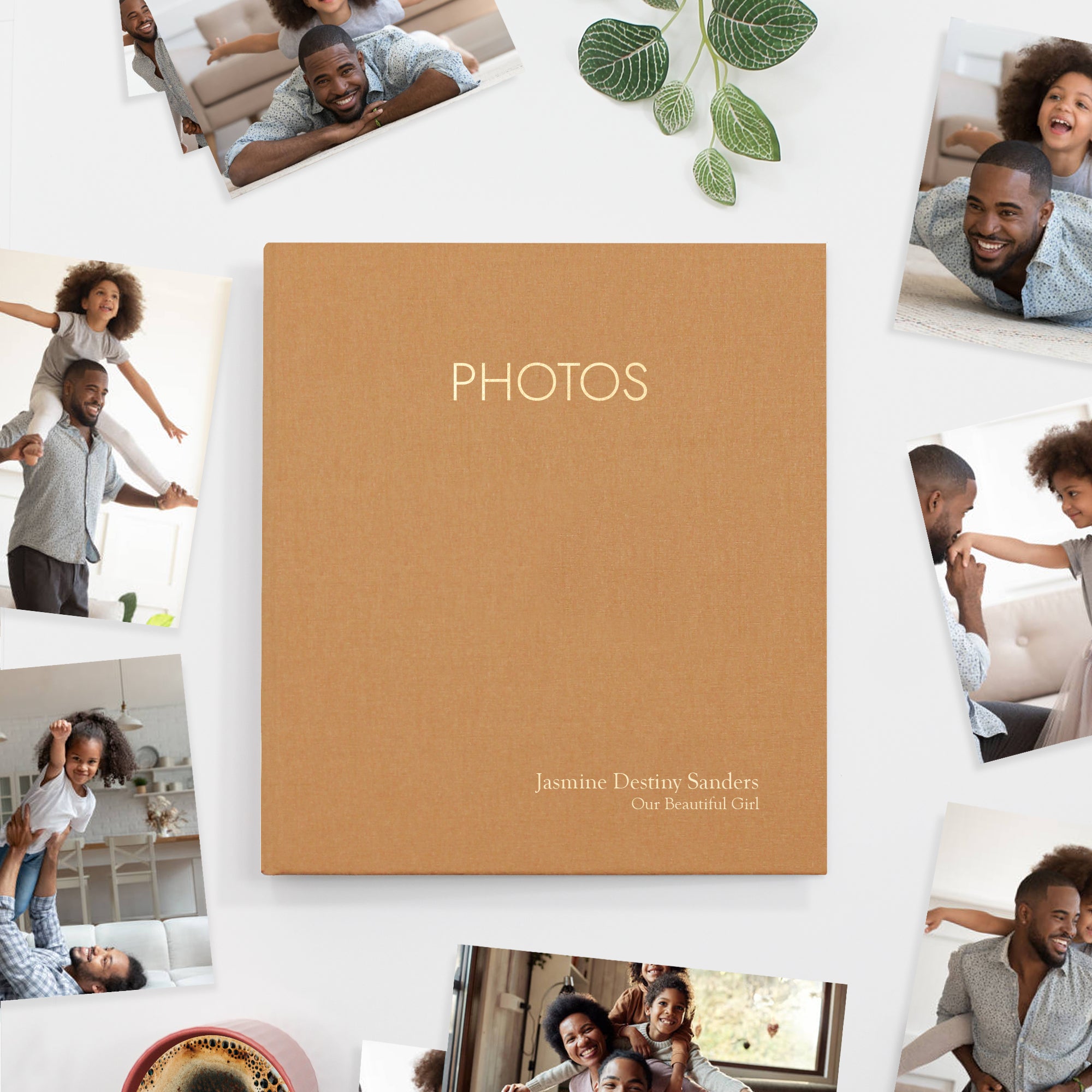 PERSONALIZATION: Add a distinctive touch to your Photo Binder with custom embossing. We can emboss a name, date, event, or short message (up to 25 characters per line) on the front cover in our classic Goudy font. See additional product images for examples. Just enter your desired text in the "Click To Emboss..." fields, and we'll take care of the rest. The gold embossed "PHOTOS" title on the front cover is optional.