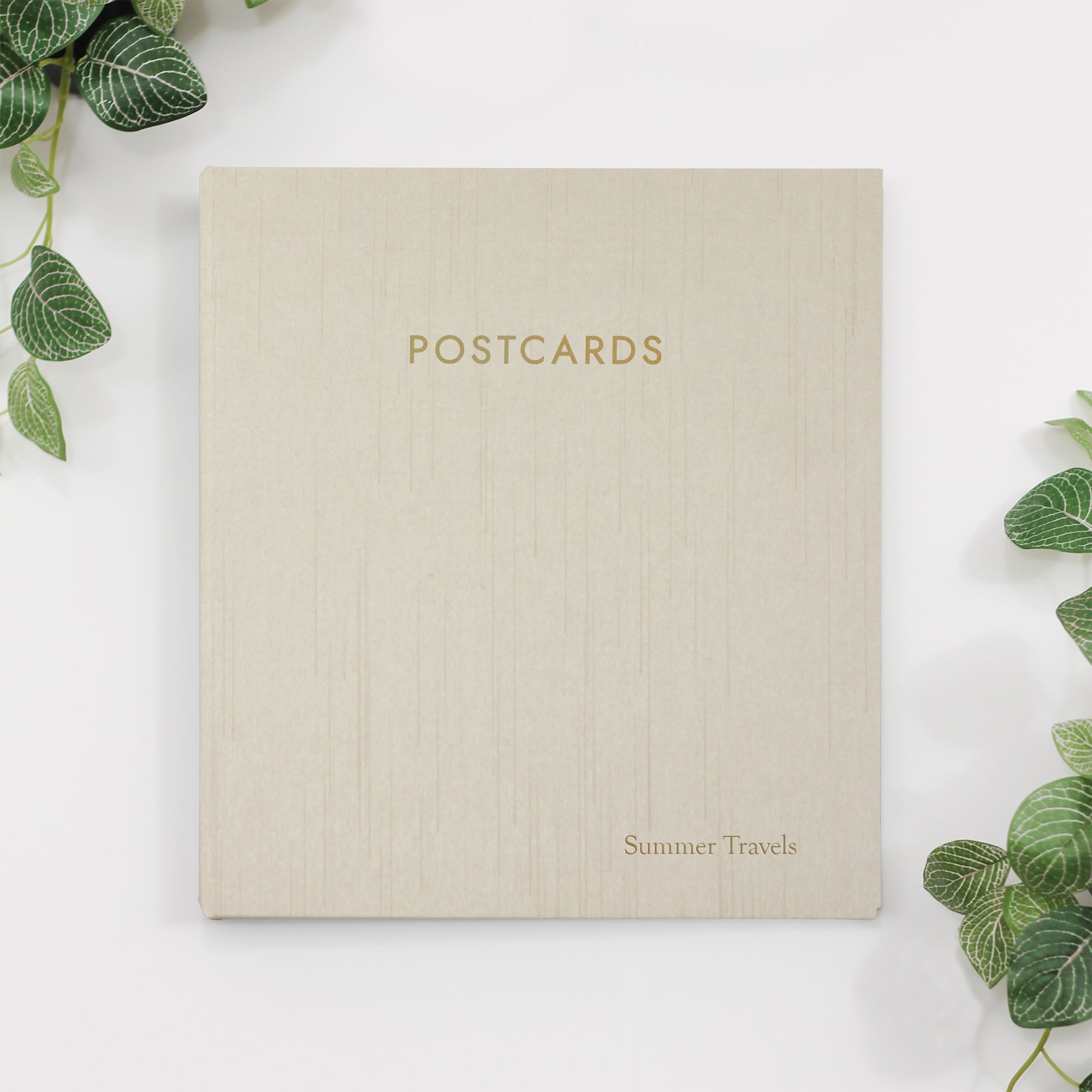 Our Large Postcard Albums provide a convenient and beautiful way to store your favorite Postcards and other collectible cards. Add gold foil embossing to personalize any of our Postcard Albums with a name, date, location or special message of your choice.