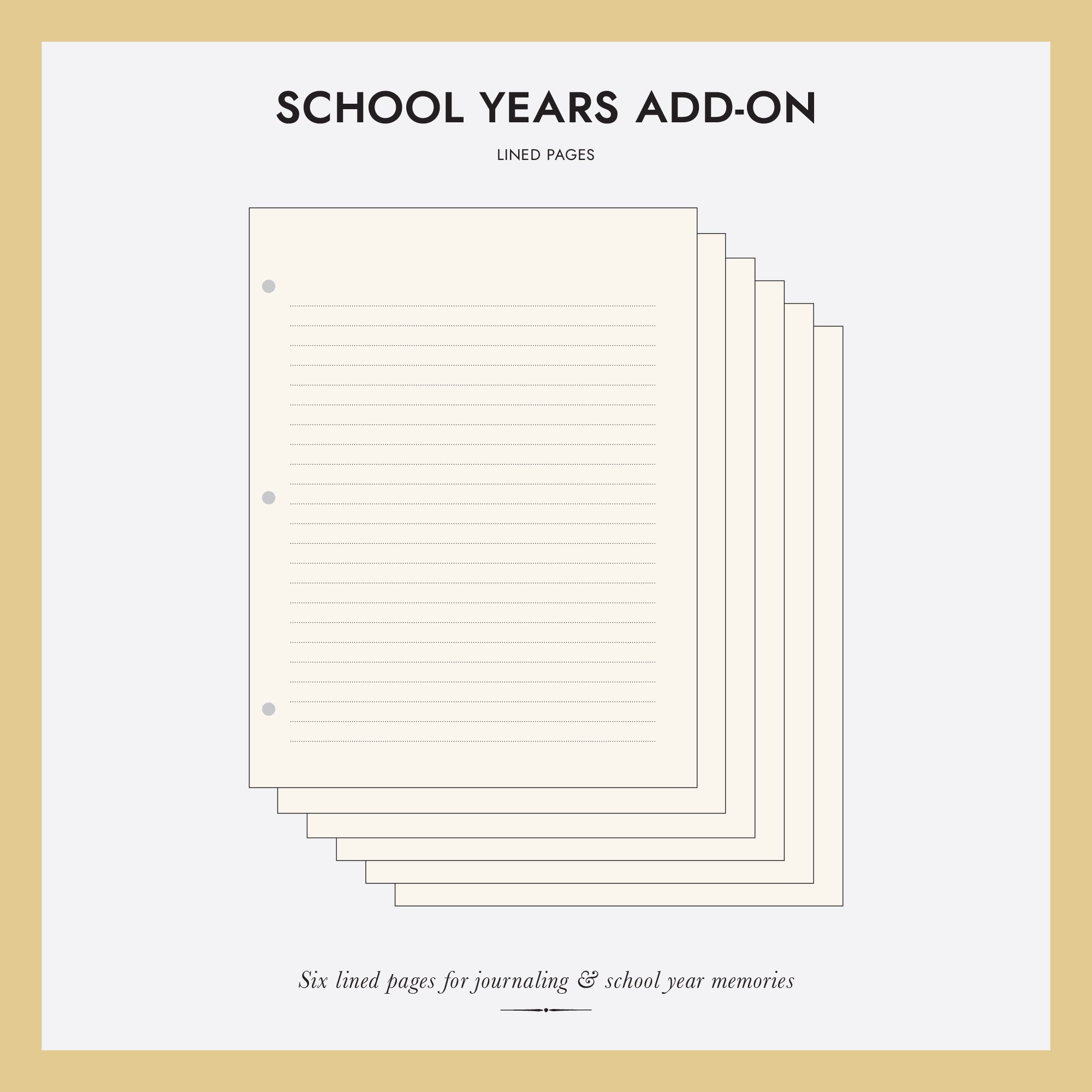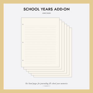 Add additional lined pages to your Rag & Bone Bindery School Years Memory Binder. Refill pack includes: 6 heavy weight ivory pages, the same paper used for prompt pages in our School Years binder. Printed one-side, reverse side blank.