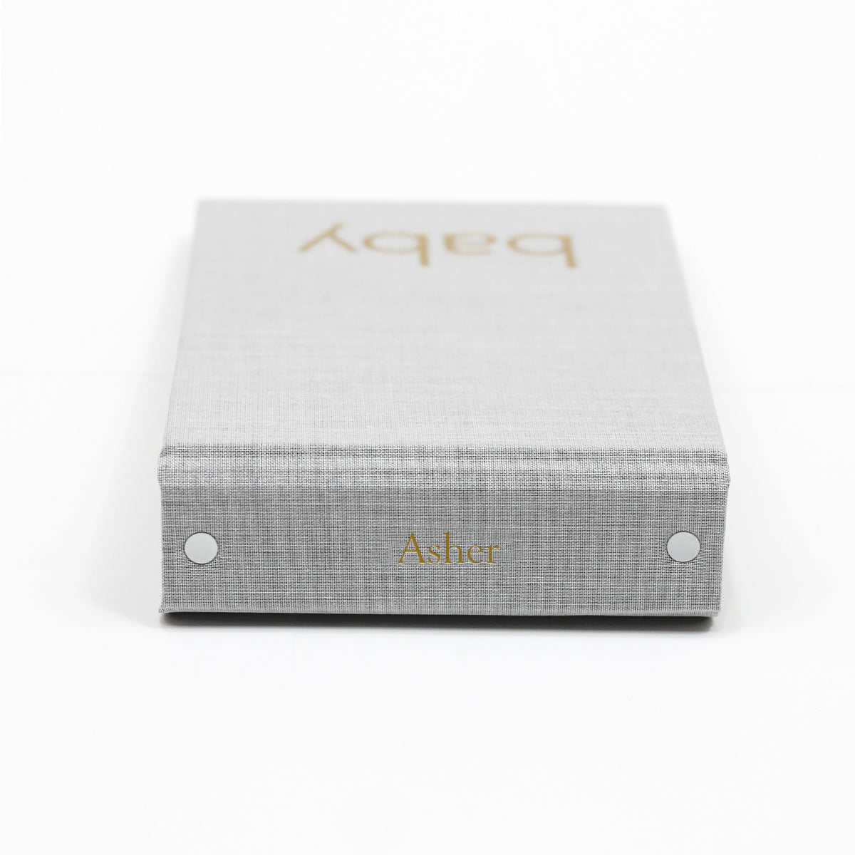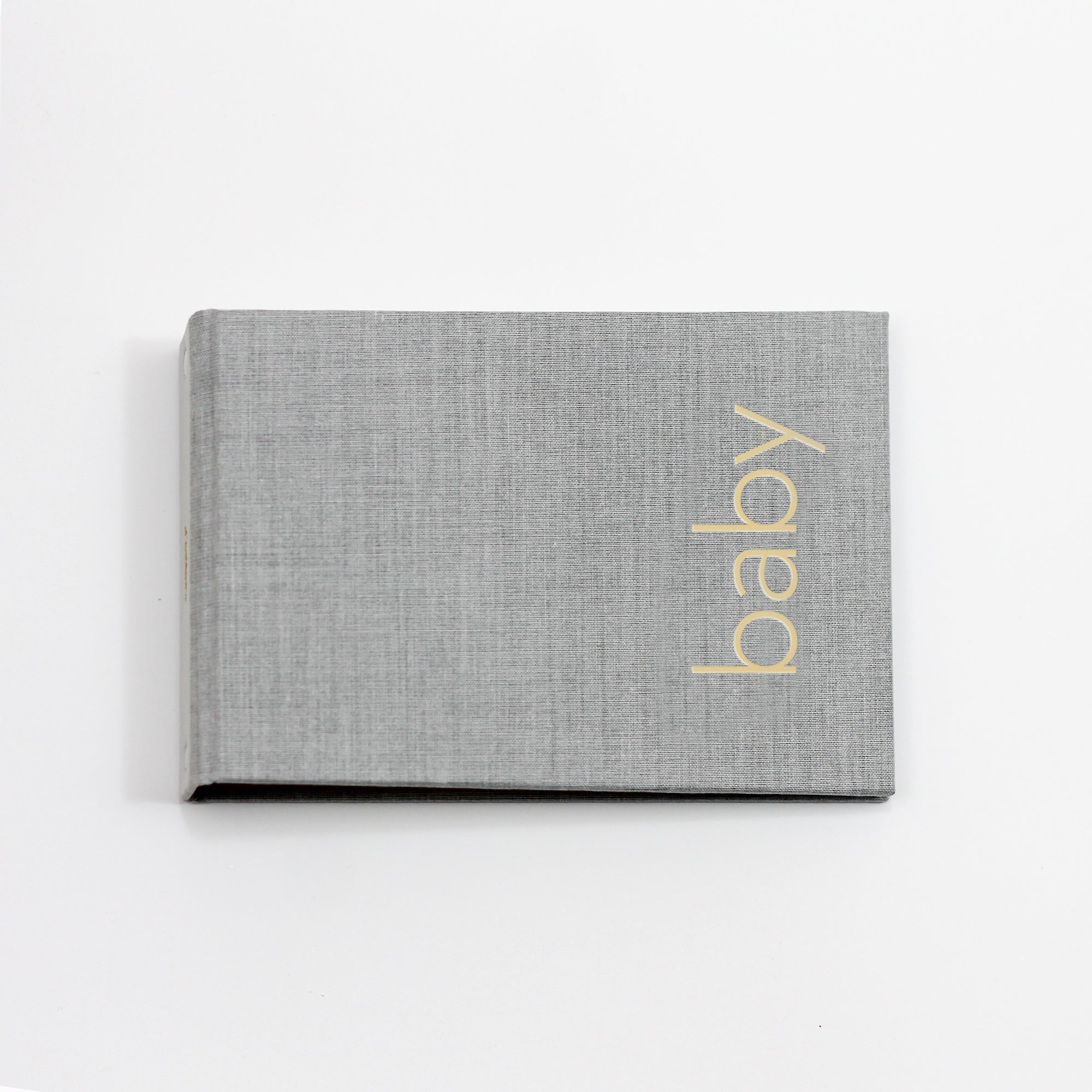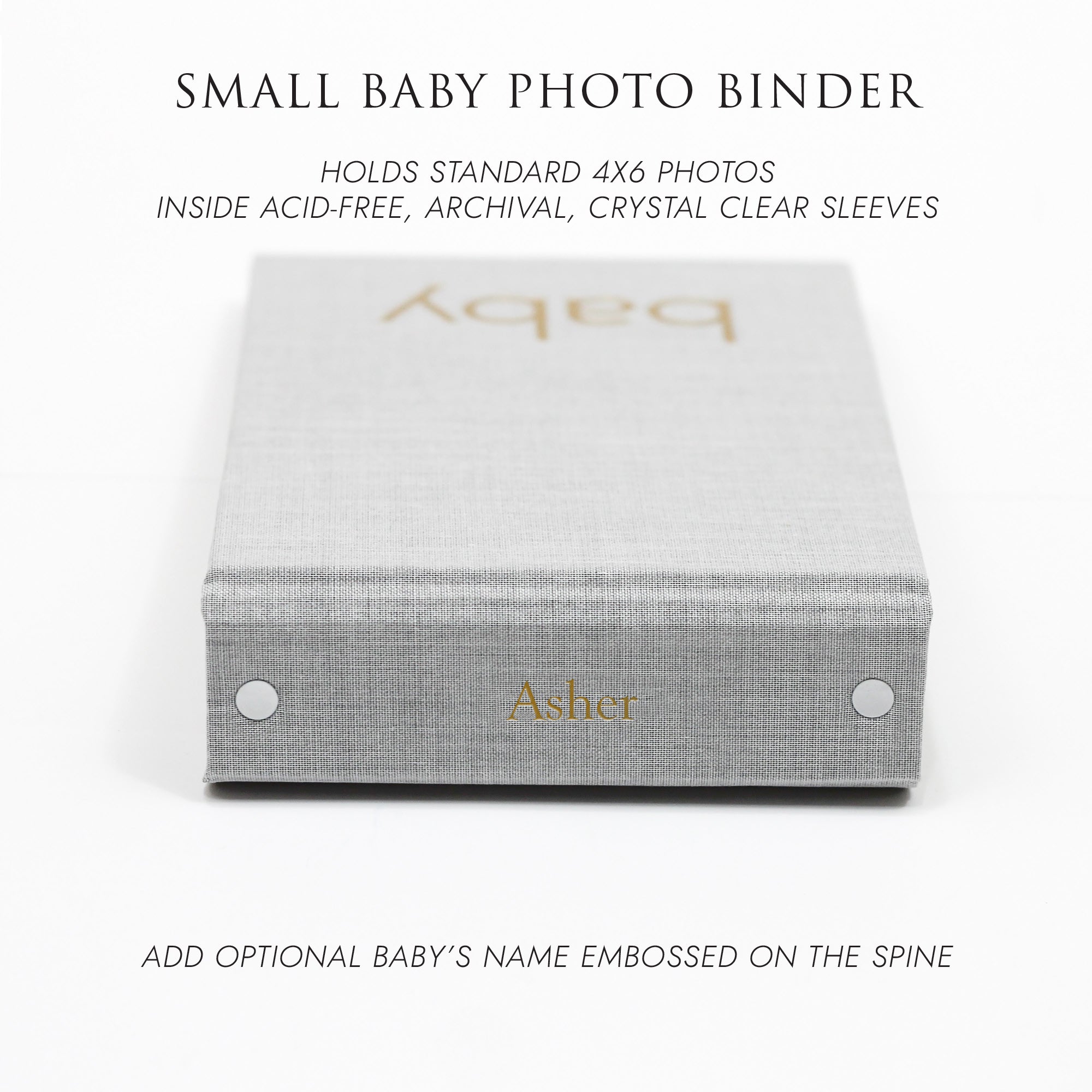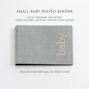 Small Baby Photo Binder | for 4x6 Photos | with Light Gray Linen Cover | Includes BABY Title On Cover
