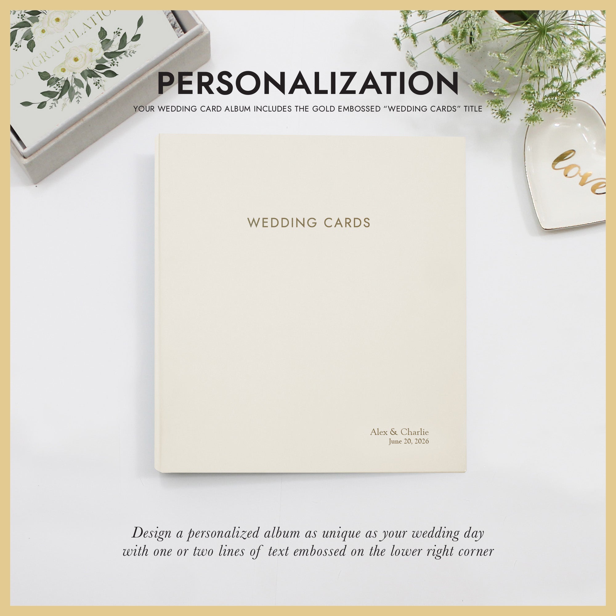 FEATURES: Showcasing an elegantly embossed "WEDDING CARDS" title, the binder includes premium, acid-free, archival sleeves that protect your precious cards from fading and damage.