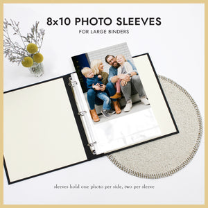 Our sleeve packs contain ten 8x10 Photo Binder sleeves (for 20 photos) which fit all of our Rag & Bone Bindery Large Photo Binders.