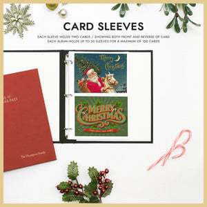 FEATURES:Clear sleeves show both the front and back of cards. Sleeves fit Christmas cards up to 5x7.