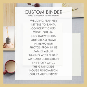 FEATURES: Custom Binders are perfect for special events, professional projects, weddings, new babies, family photos and more.