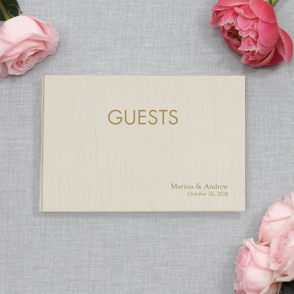 PERSONALIZATION: Personalize your Guestbook with name & date or other special message embossed right on the front cover for a unique one-of-a-kind Guestbook. The font we use is Goudy, and we can emboss up to 25 characters per line onto the lower right corner of the cover. See additional product images for embossing examples & details.