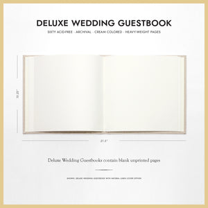 Capture the memories of your special day with our exquisite Deluxe Wedding Guestbook, designed to be a beautiful and lasting keepsake. Inside, 60 pages of high-quality, cream-colored, acid-free paper await your guests' heartfelt messages, well wishes, and even fun photo booth strips. The archival quality ensures these precious memories are preserved for years to come.