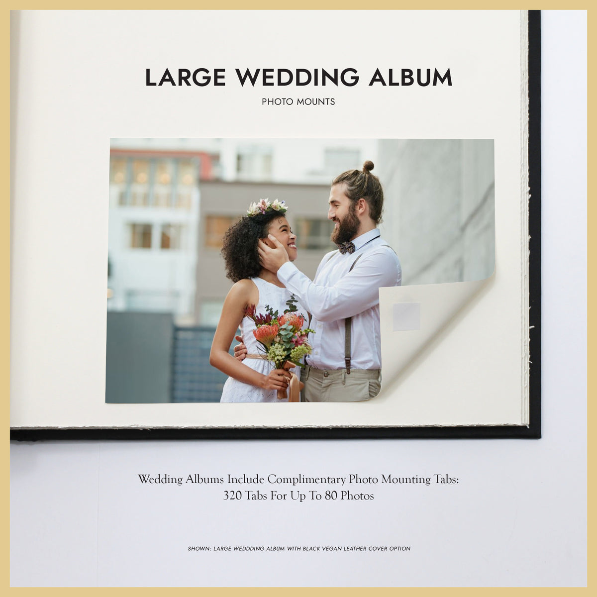 Capture the timeless elegance of your wedding day with our handcrafted, classic paper page Wedding Album. Designed to safeguard your precious memories for generations, our Albums are crafted with archival, acid-free materials, ensuring your photos remain vibrant and pristine. Includes 320 acid-free, archival photo mounting tabs, enough for 80 photos, making it easy to create your personalized layout.