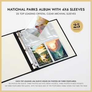 Relive your national park adventures with an elegant, modern travel Postcard & Photo Binder. Our National Parks Binder was designed specifically to hold all your Postcards and Photos from your adventures and travels. There are 60+ National Parks in the U.S., and what better way to capture memories and memorabilia than with a custom binder!