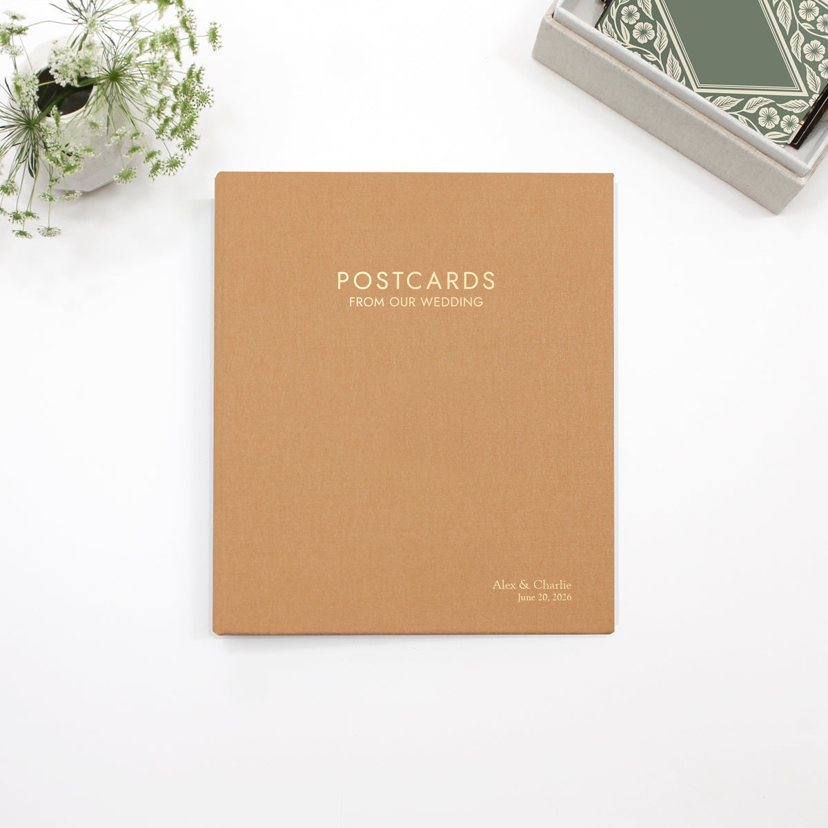 Postcards From Our Wedding Guestbook | Cover: Antique Gold Silk | Available Personalized