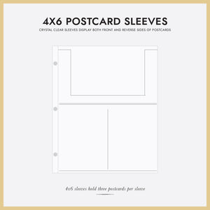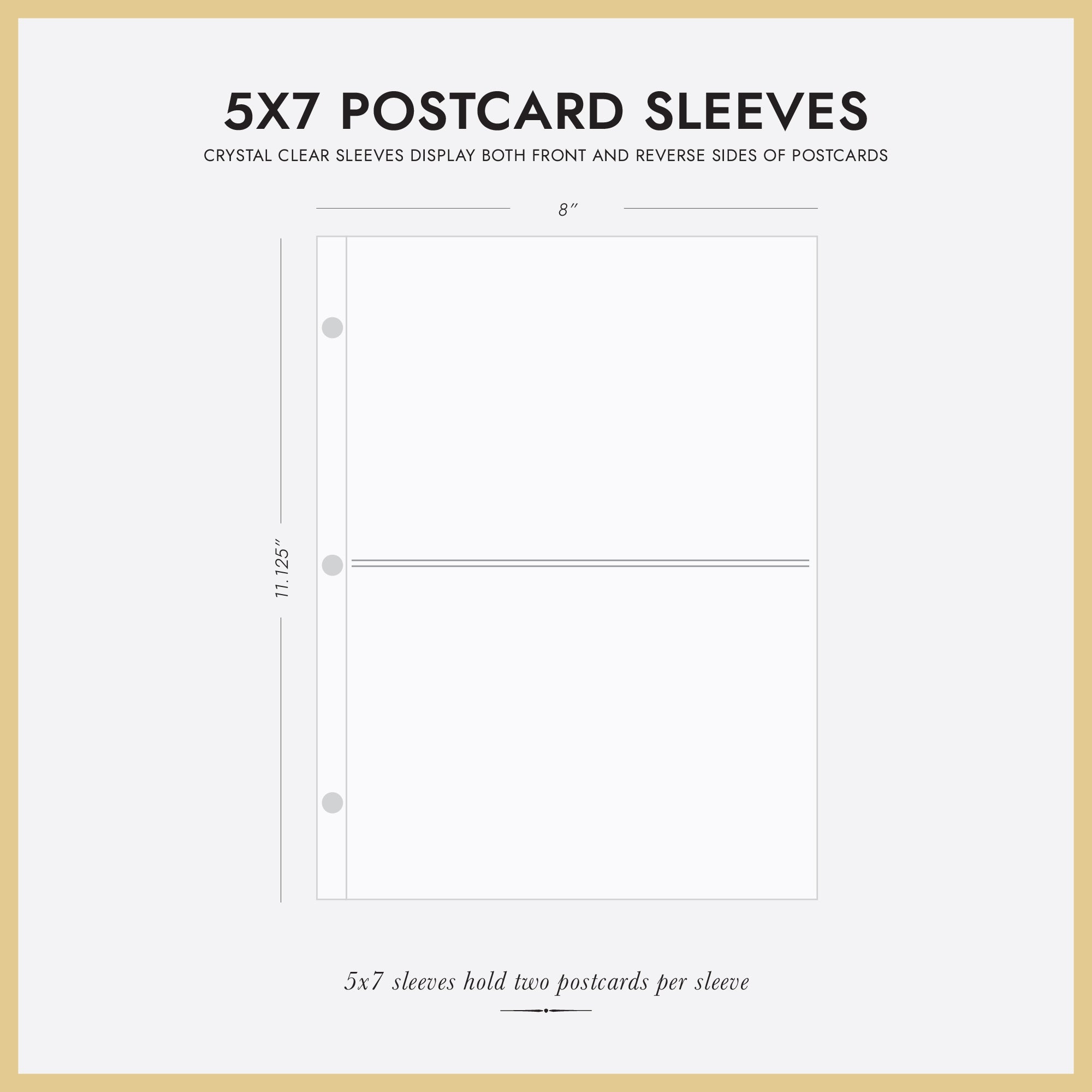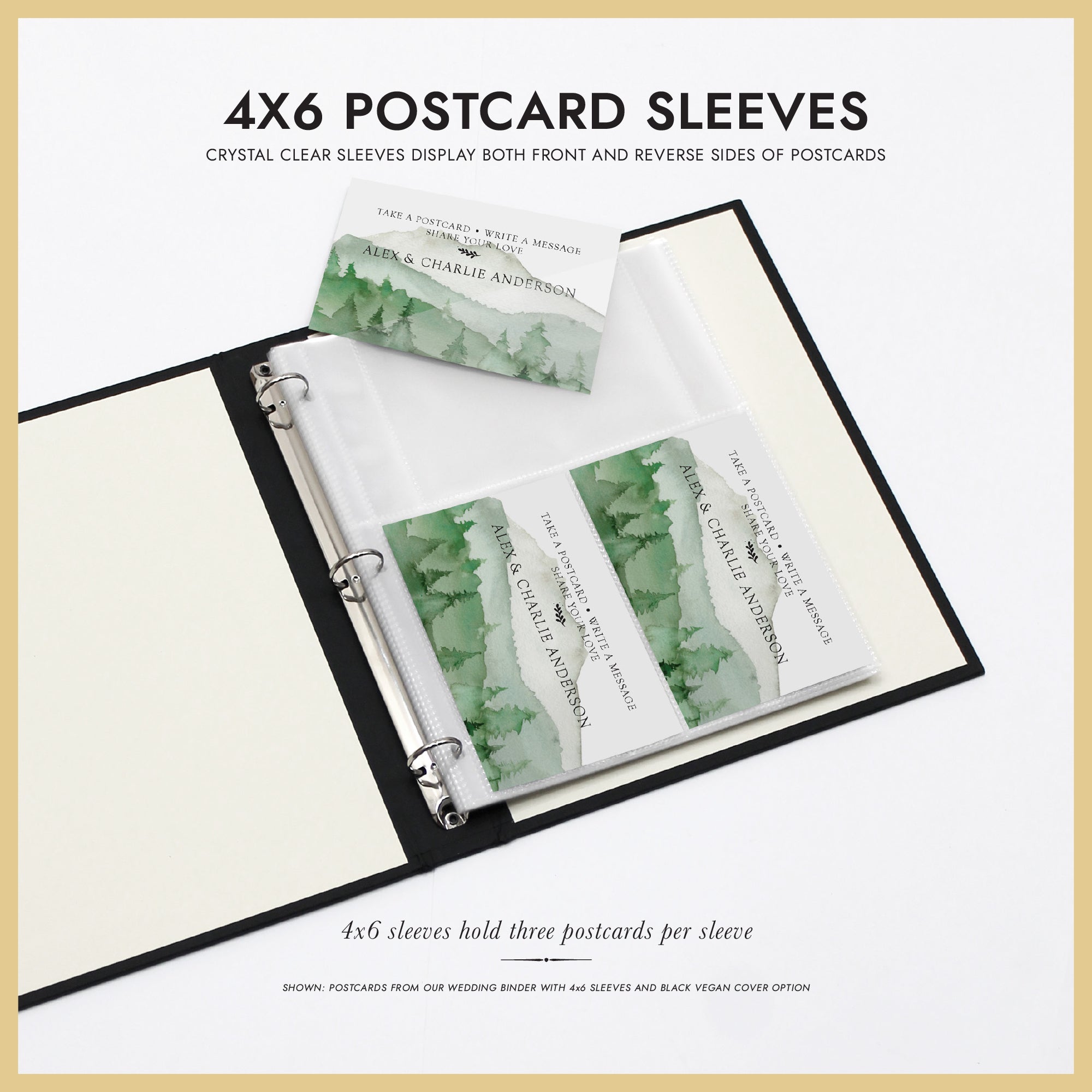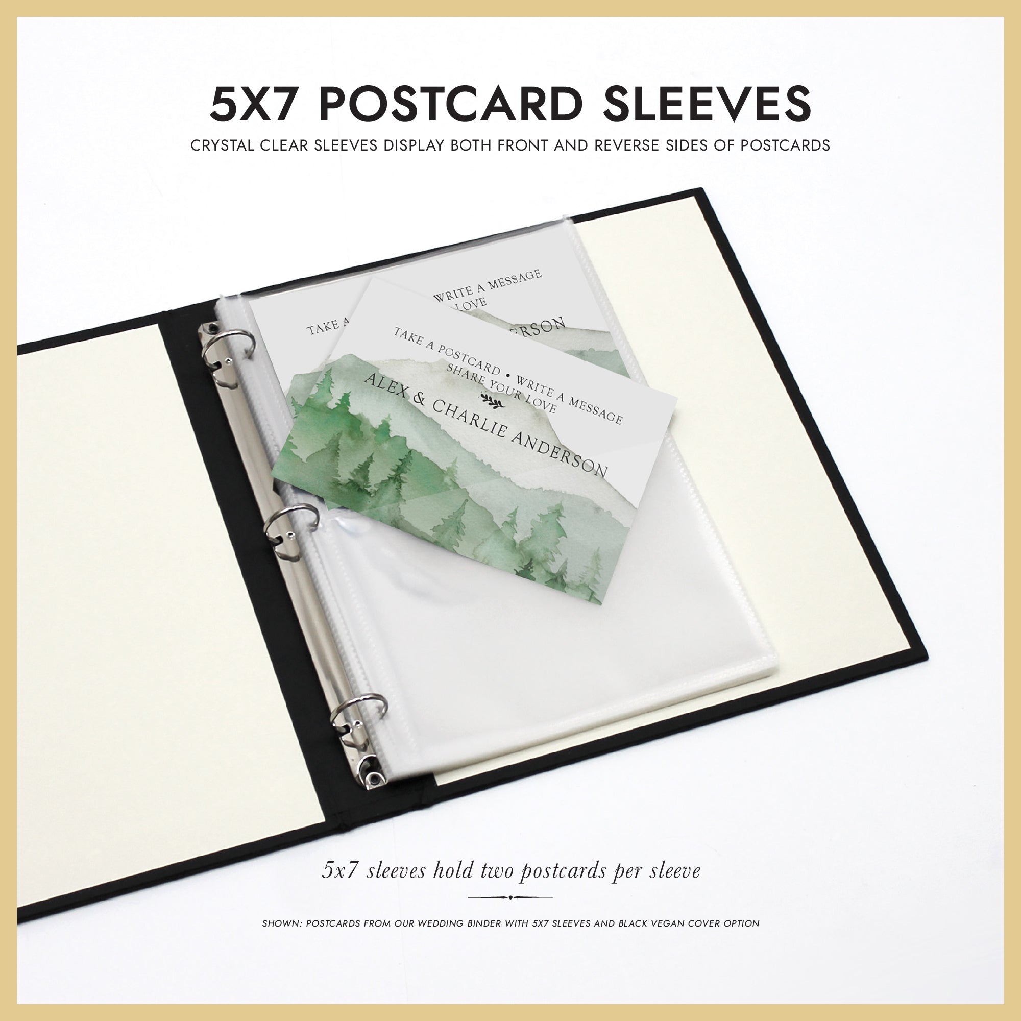FEATURES: Featuring an elegantly embossed "POSTCARDS FROM OUR WEDDING" title, the binder includes premium, pvc-free, archival sleeves to protect your precious cards from fading and damage. Crystal clear sleeves are available for either 4x6 or 5x7 postcards. The transparent sleeves showcase both sides of each postcard.
