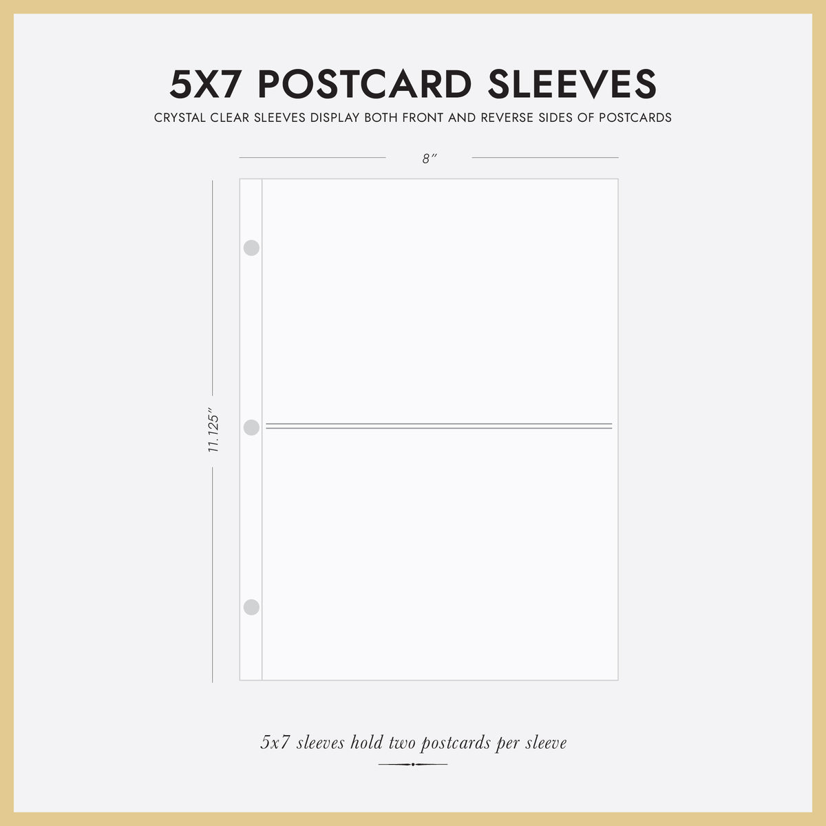 • Select sleeves for 4x6 or 5x7 postcards