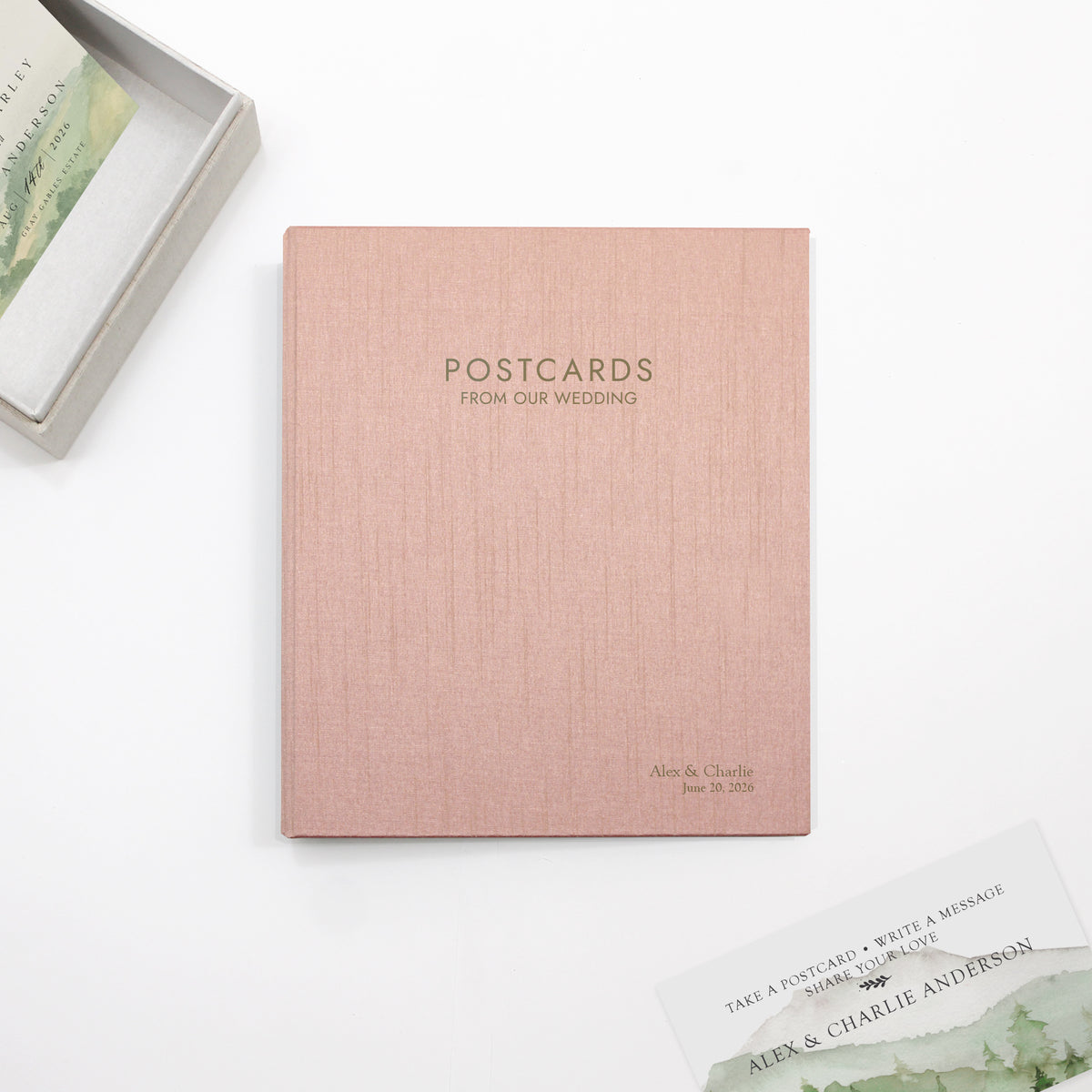 Postcards From Our Wedding Guestbook | Cover: Pink Silk | Available Personalized