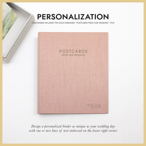 FEATURES: Featuring an elegantly embossed "POSTCARDS FROM OUR WEDDING" title, the binder includes premium, pvc-free, archival sleeves to protect your precious cards from fading and damage. Crystal clear sleeves are available for either 4x6 or 5x7 postcards. The transparent sleeves showcase both sides of each postcard.