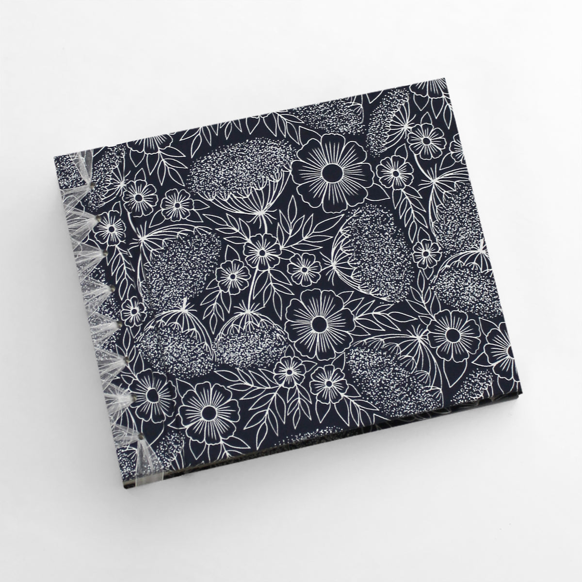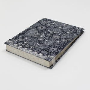 INSIDE: Forty creme colored, heavy weight, blank pages which are acid-free, archival, and feature a unique deckle-edged finish.