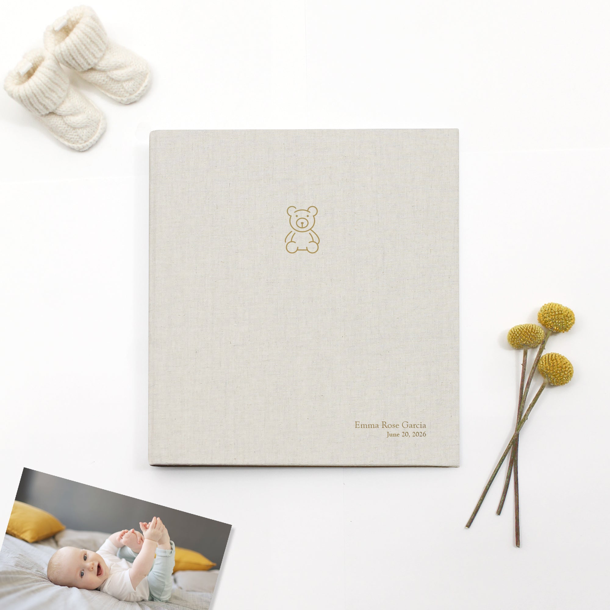 Welcome your little one's memories into the world with our charming Teddy Bear Photo Binder. This special collection combines the cherished Rag & Bone Bindery quality you love with a sweet, timeless teddy bear icon, perfect for celebrating the newest addition to your family. This binder is designed to be the heirloom that holds every precious first: first smiles, first steps, and every moment in between. Choose the size and cover that's just right for your growing photo collection.